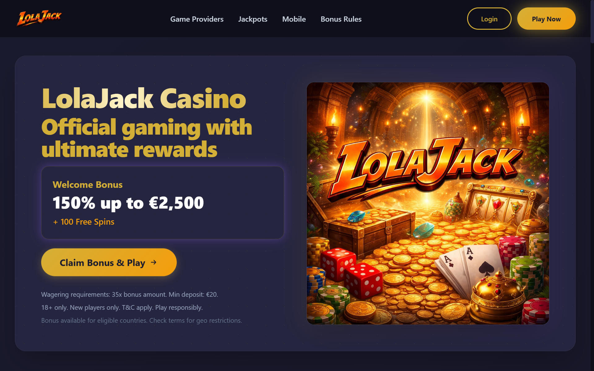 The site interface reflects this premium positioning without unnecessary clutter. Navigation is built around categories rather than a single long lobby, with dedicated tabs for Bonus Buys, Megaways, Jackpot Play, Drops and Wins, and a full suite of Live Casino sub-sections, allowing experienced players to drill directly to their preferred mechanics. For the Australian player who wants genuine depth LolaJack is one of the strongest market entries of 2026.